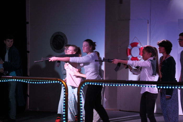 Zuschauer auf den Mond. Bilder von den Aufführungen der Klassen 5 am 7., 8., 17. und 18. Juni 2013 |